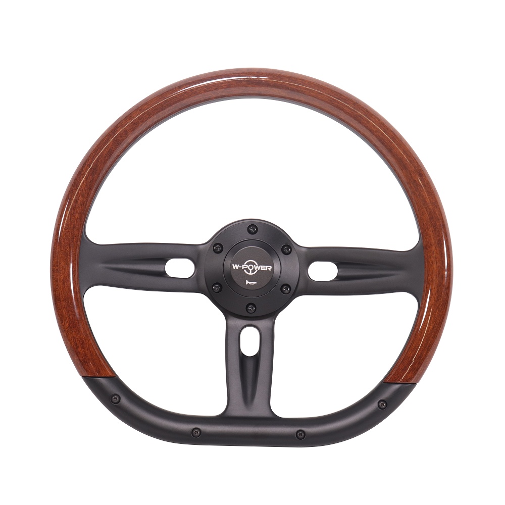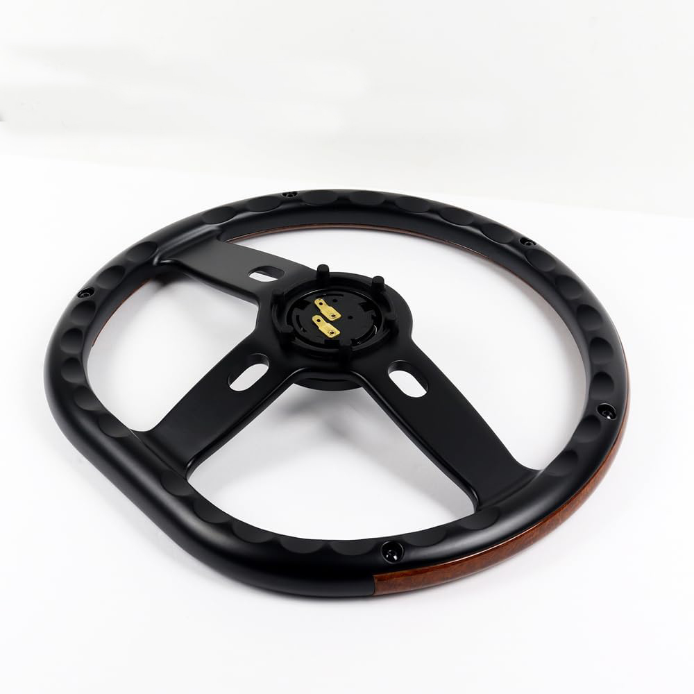 • 350mmステアリングホイール ブラックメッキアルミ合金スポーク 木目調 ディープディッシュ50mm