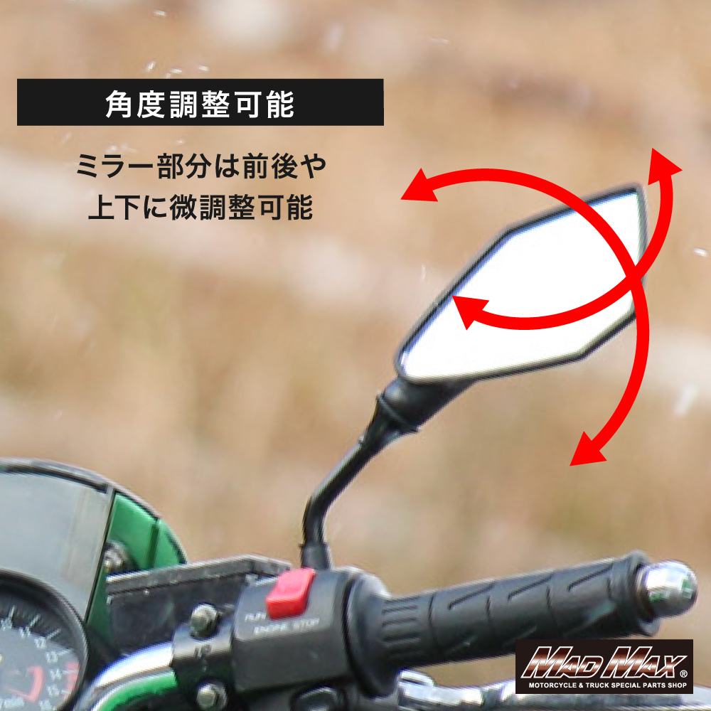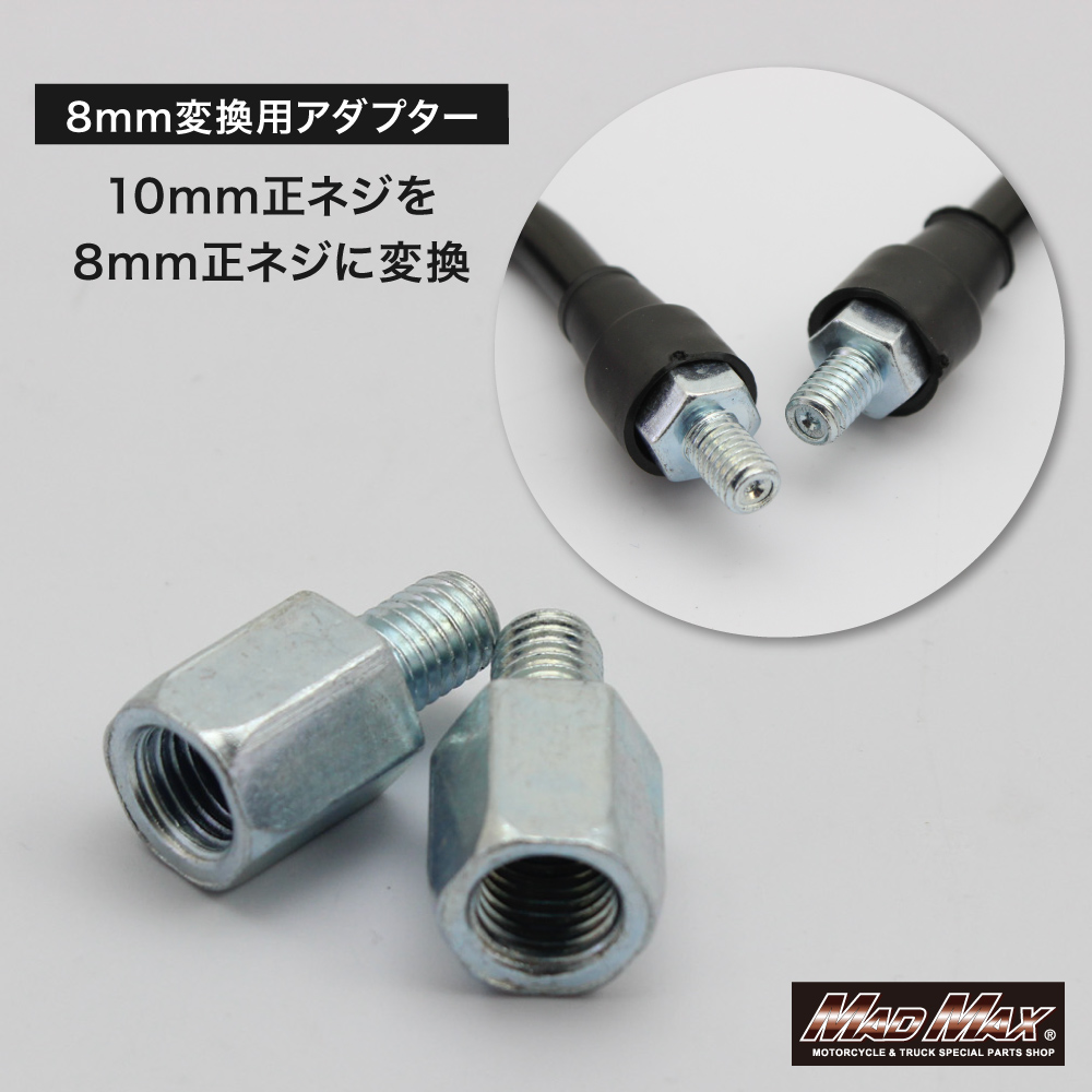正ネジ10mm、正ネジ8mm(付属のアダプター使用)のミラーに対応。