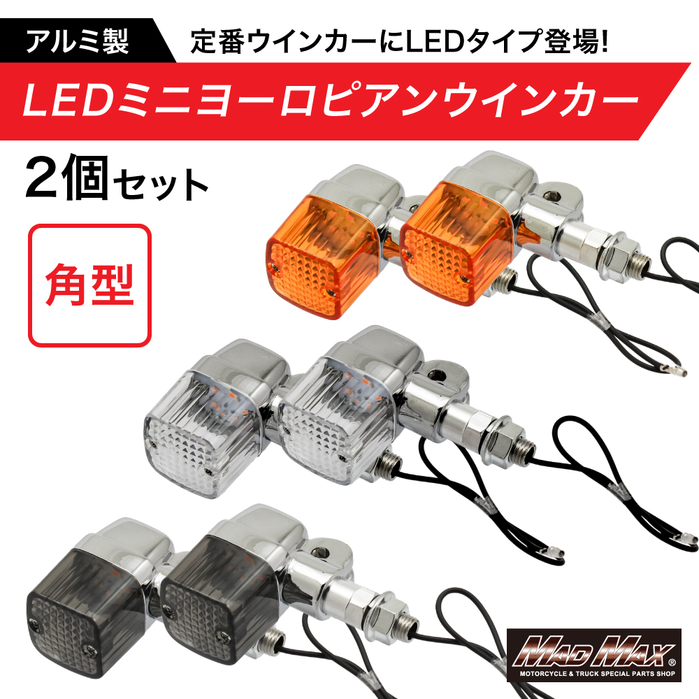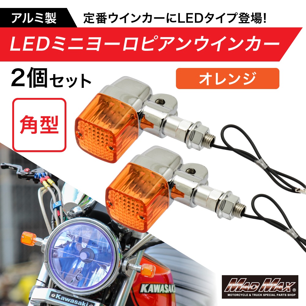 バイク用 アルミ製 角型 LED ミニヨーロピアンウインカー オレンジ 12V 2個セット。