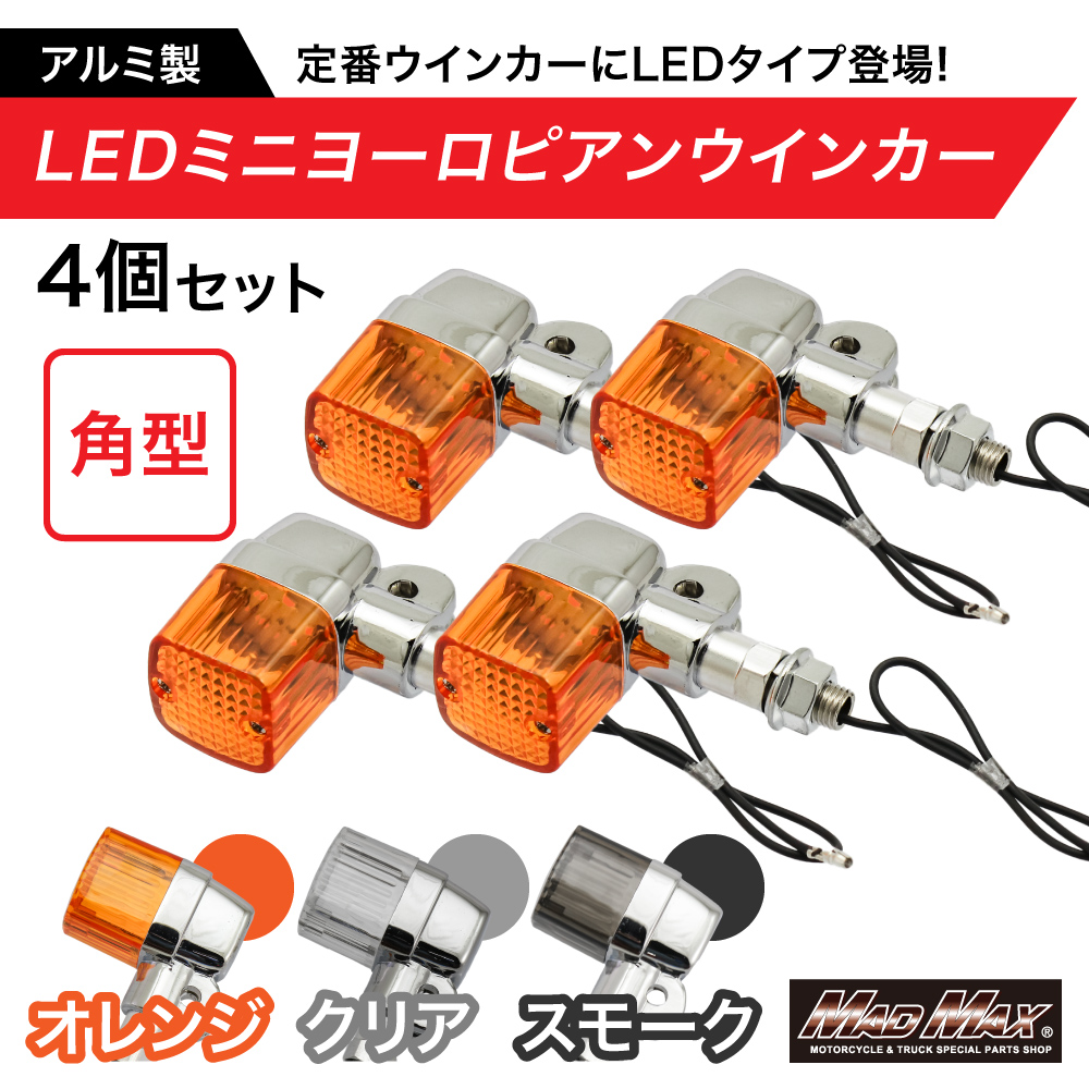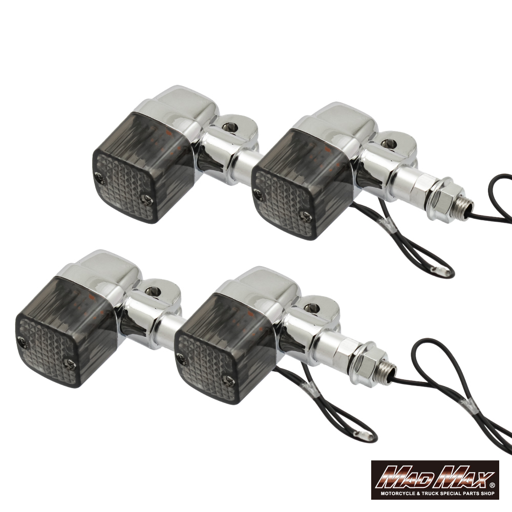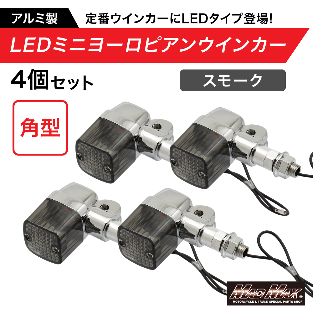 バイク用 アルミ製 角型 LED ミニヨーロピアンウインカー スモーク 12V 4個セット。