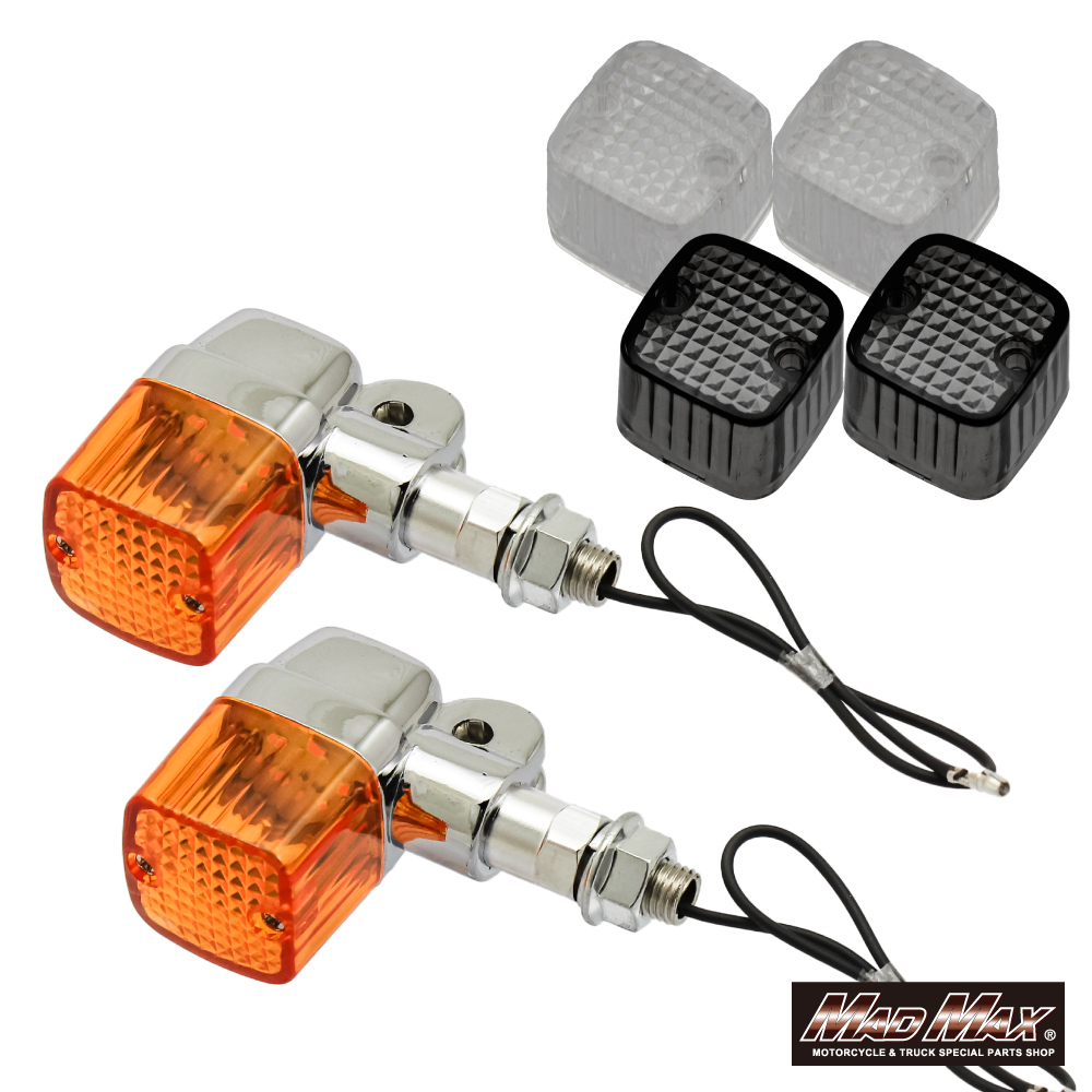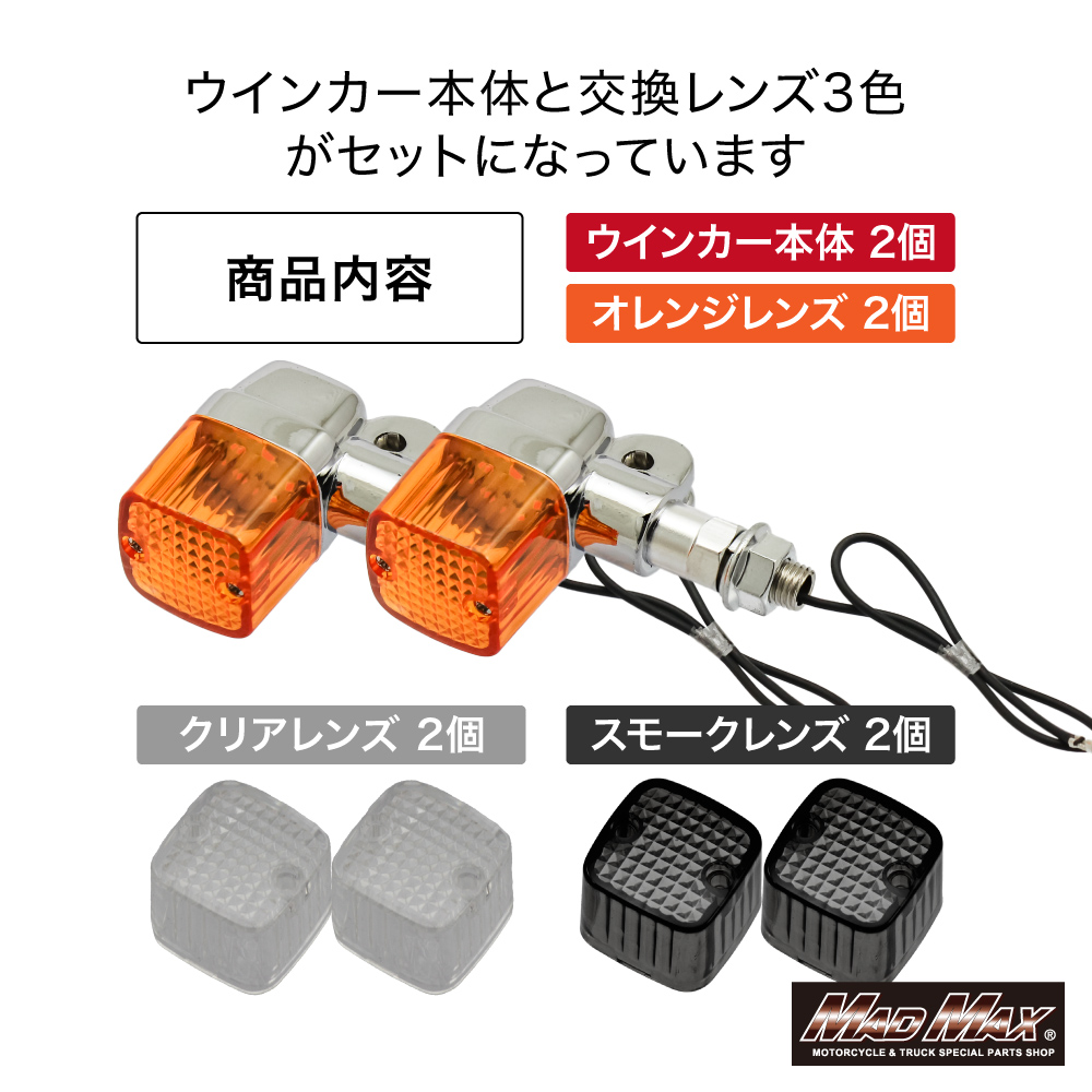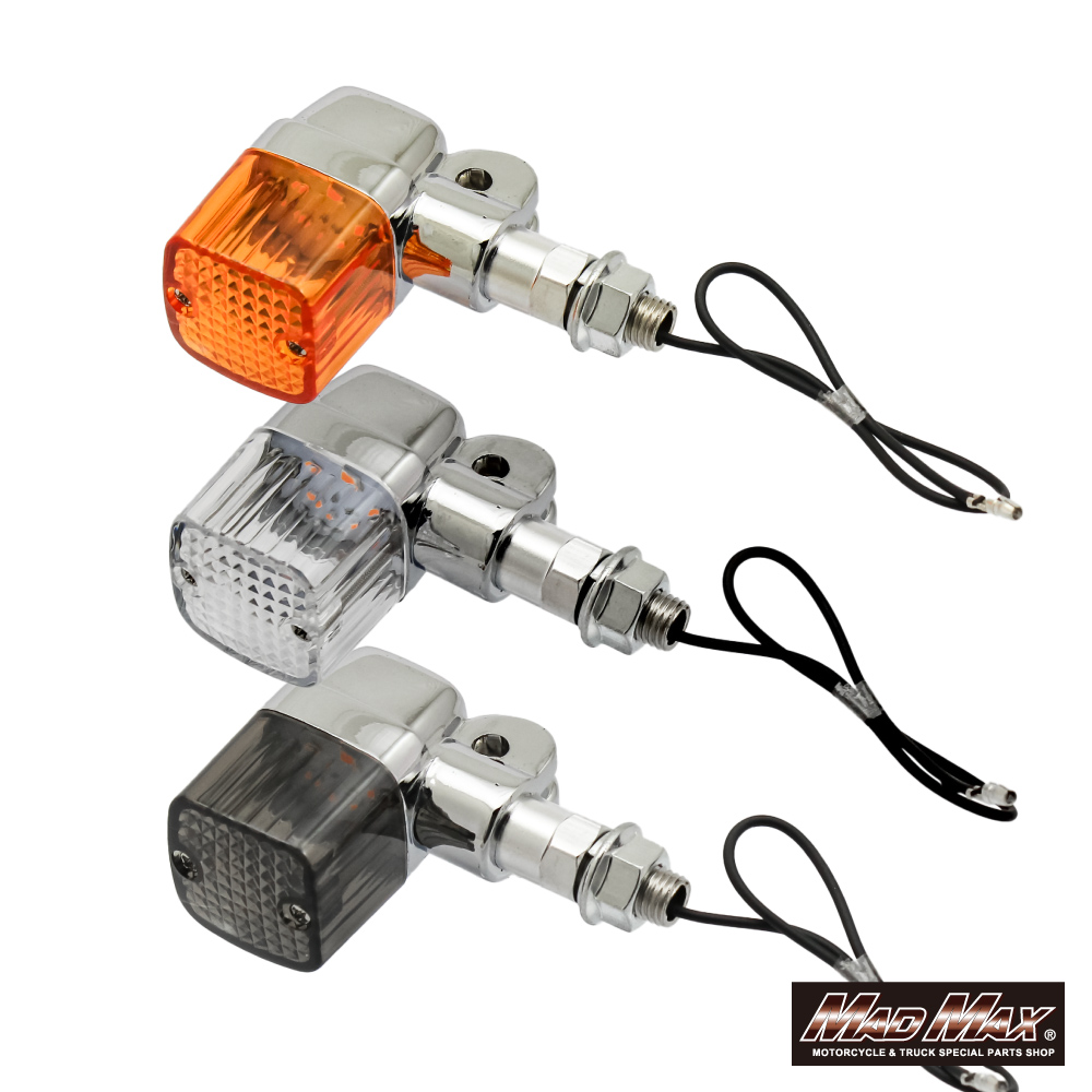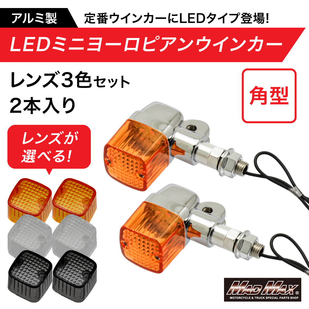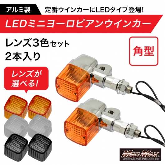 バイク用 アルミ製 角型 LED ミニ ヨーロピアンウインカー レンズ3色セット(オレンジ・スモーク・クリア)12V 2個セット。