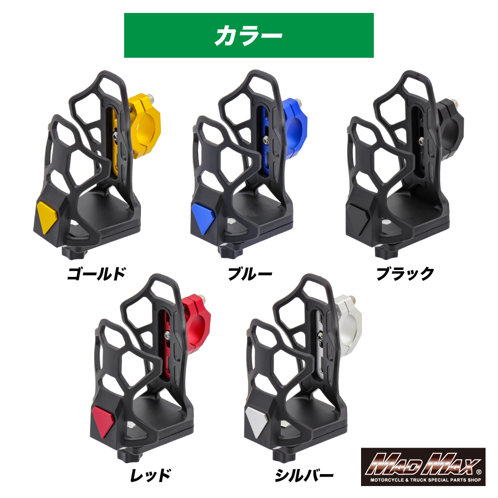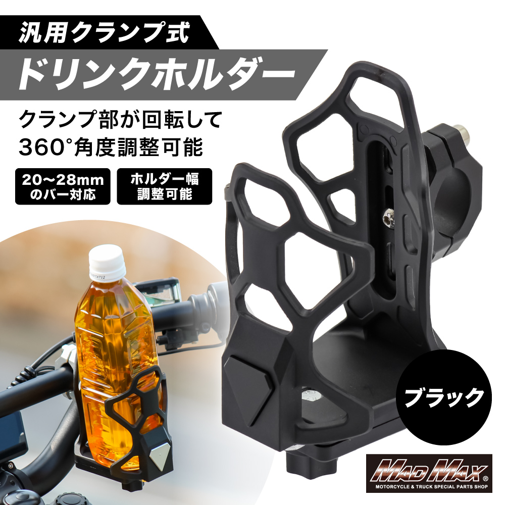バイク用 ドリンクホルダー ハンドルクランプタイプ ブラック。