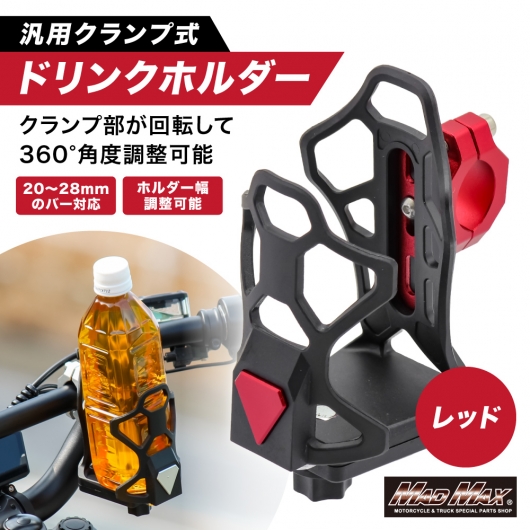 バイク用 ドリンクホルダー ハンドルクランプタイプ レッド。