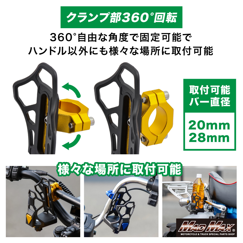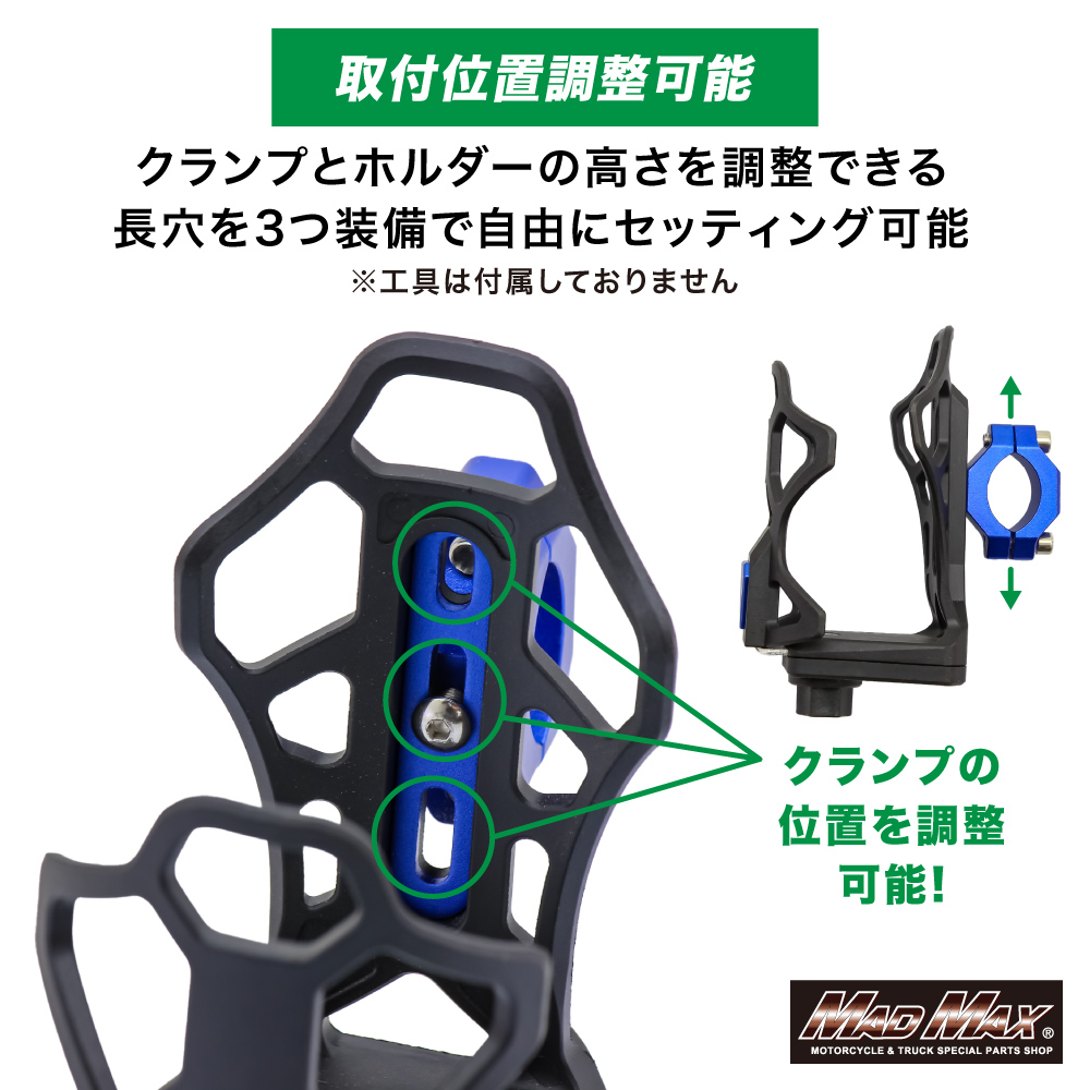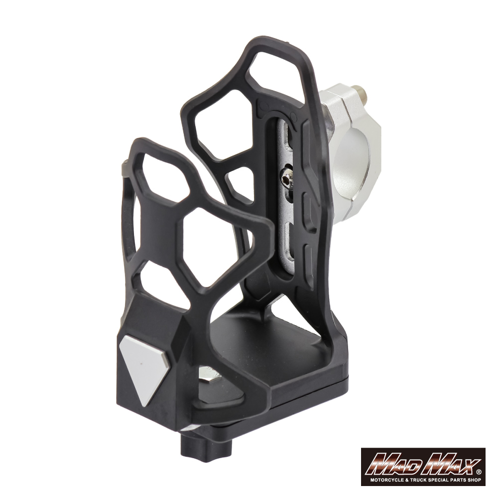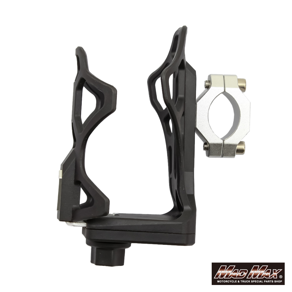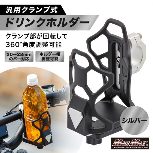 バイク用 ドリンクホルダー ハンドルクランプタイプ シルバー。