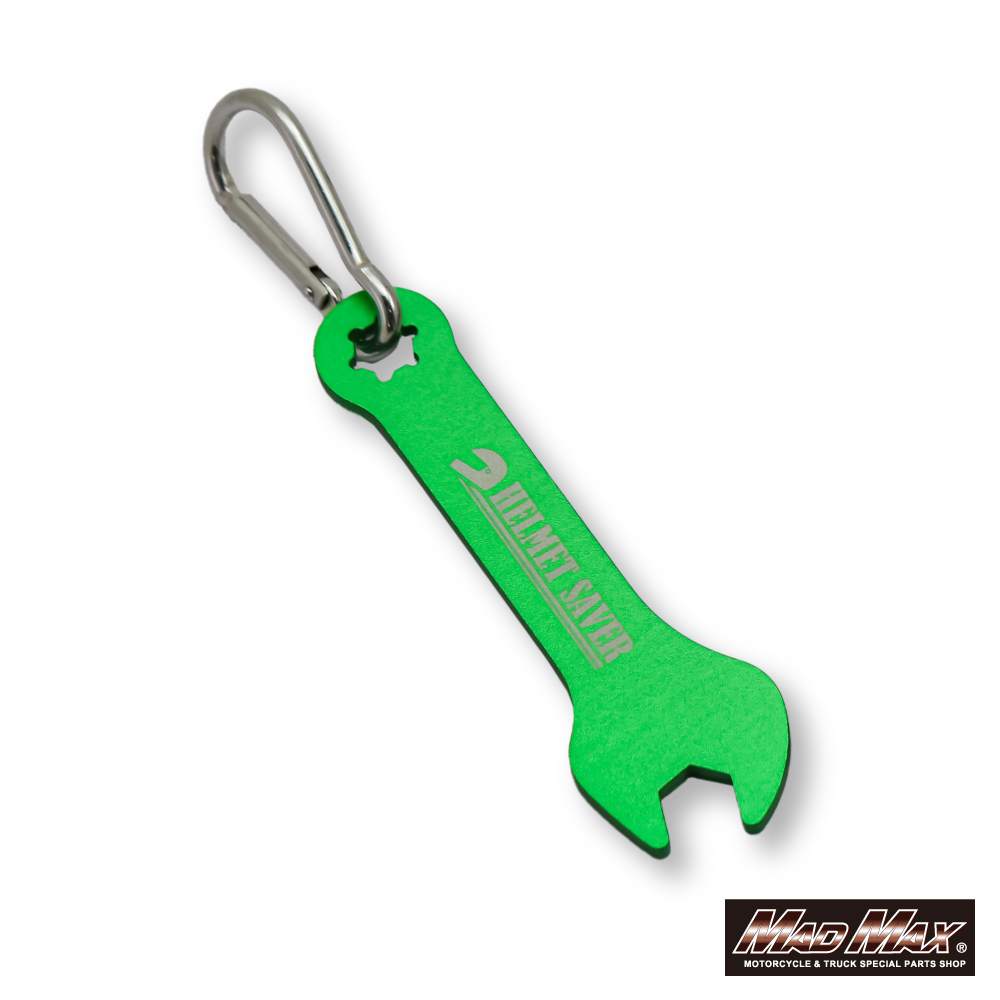 アルミ製 スパナ型 ヘルメットセイバー カラビナ付き グリーン。