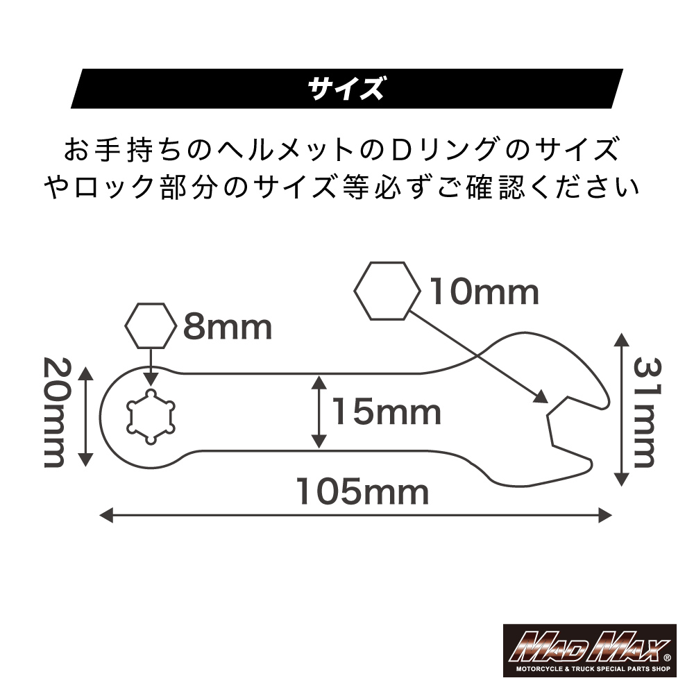 幅広いヘルメットのDリングに対応しています。(Dリングサイズを必ずご確認ください)。