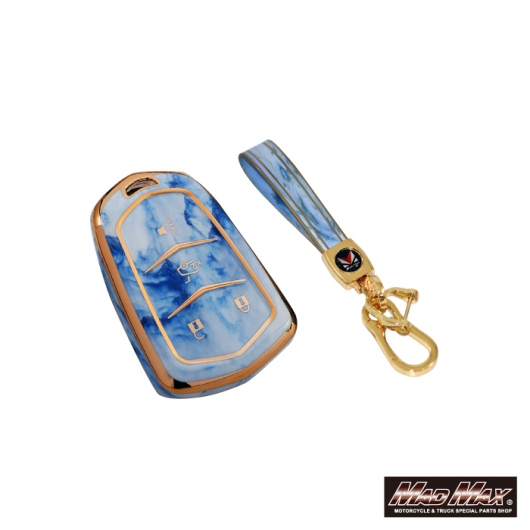 キャデラック専用 大理石調 TYPE A 4ボタン式 TPUソフト スマートキーケース ブルー。