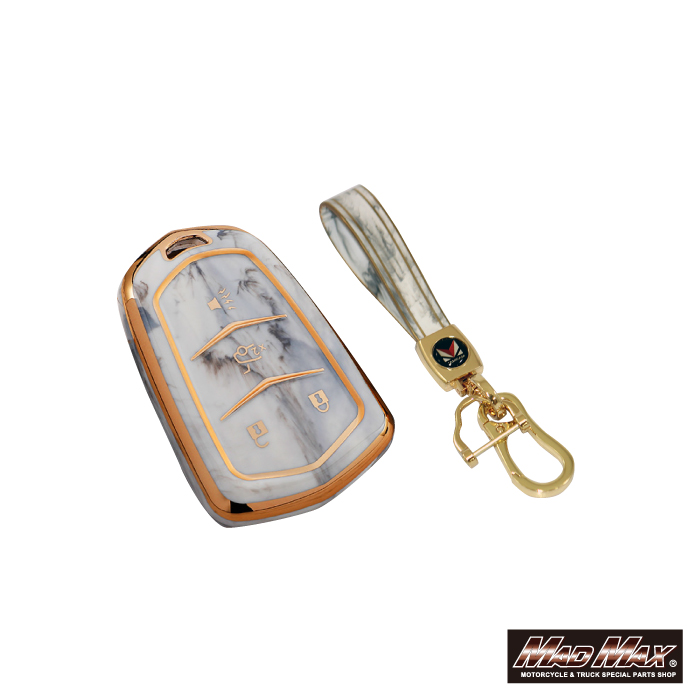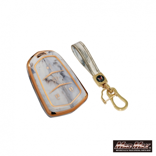 キャデラック専用 大理石調 TYPE A 4ボタン式 TPUソフト スマートキーケース グレー。