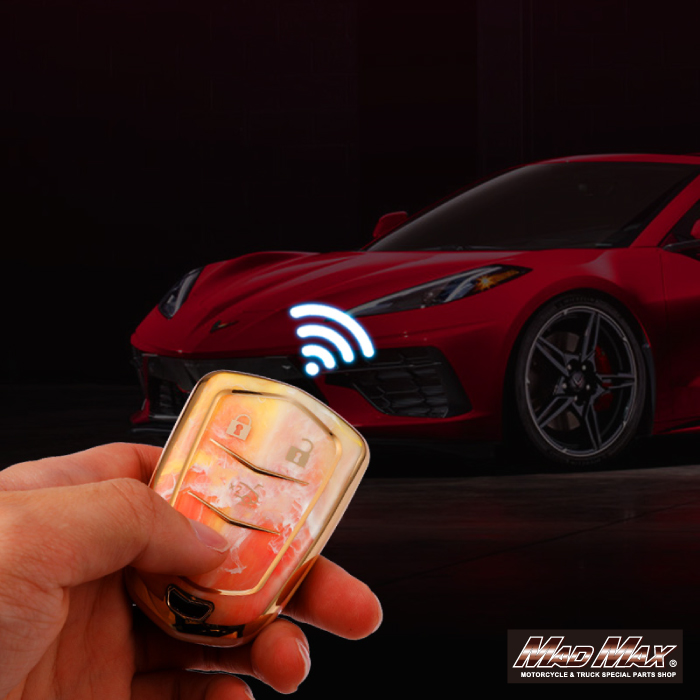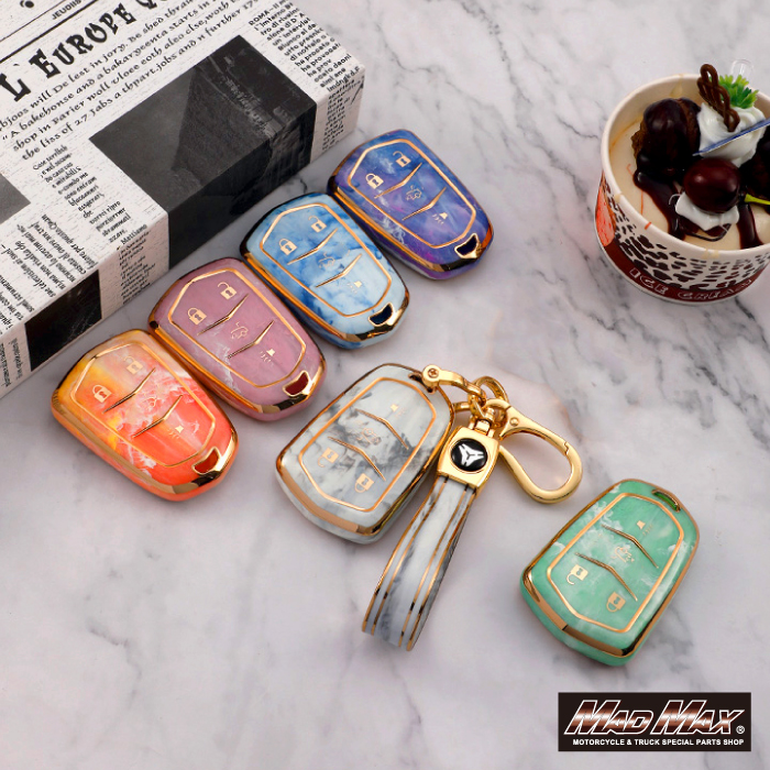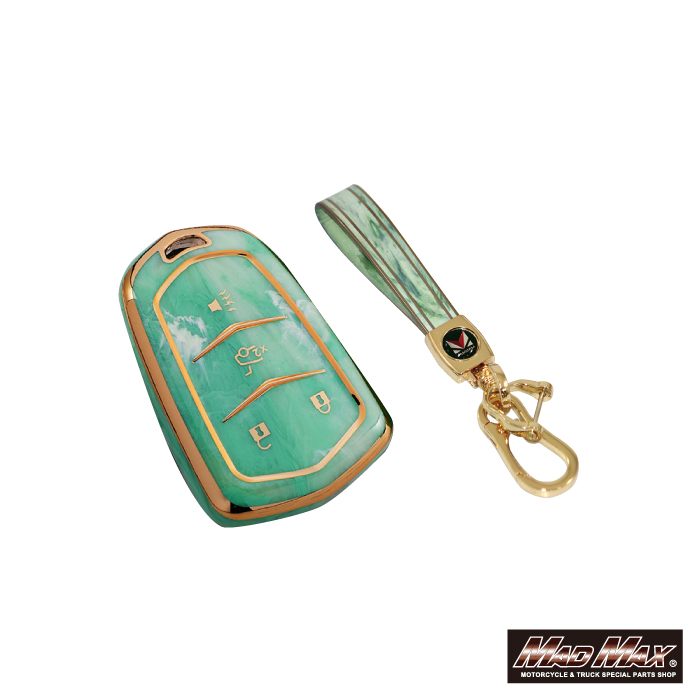 キャデラック専用 大理石調 TYPE A 4ボタン式 TPUソフト スマートキーケース グリーン。