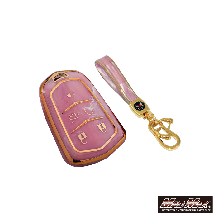 キャデラック専用 大理石調 TYPE A 5ボタン式 TPUソフト スマートキーケース ピンク。