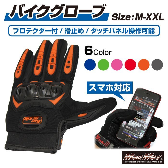 バイク用 ライディンググローブ スマホ対応 滑り止め 手袋 ブラック XXLサイズ。