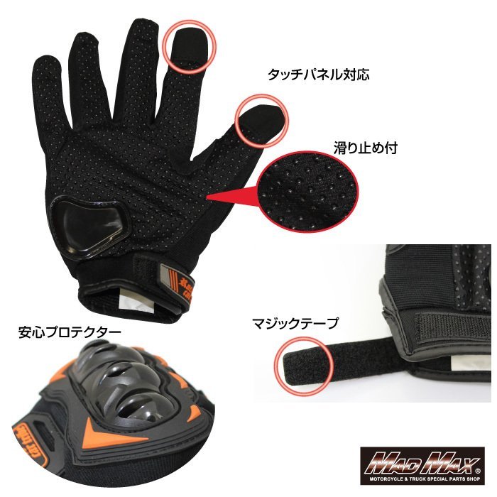 通気性の良いメッシュ仕様のグローブです。春、夏、秋、のツーリングシーズにピッタリ。