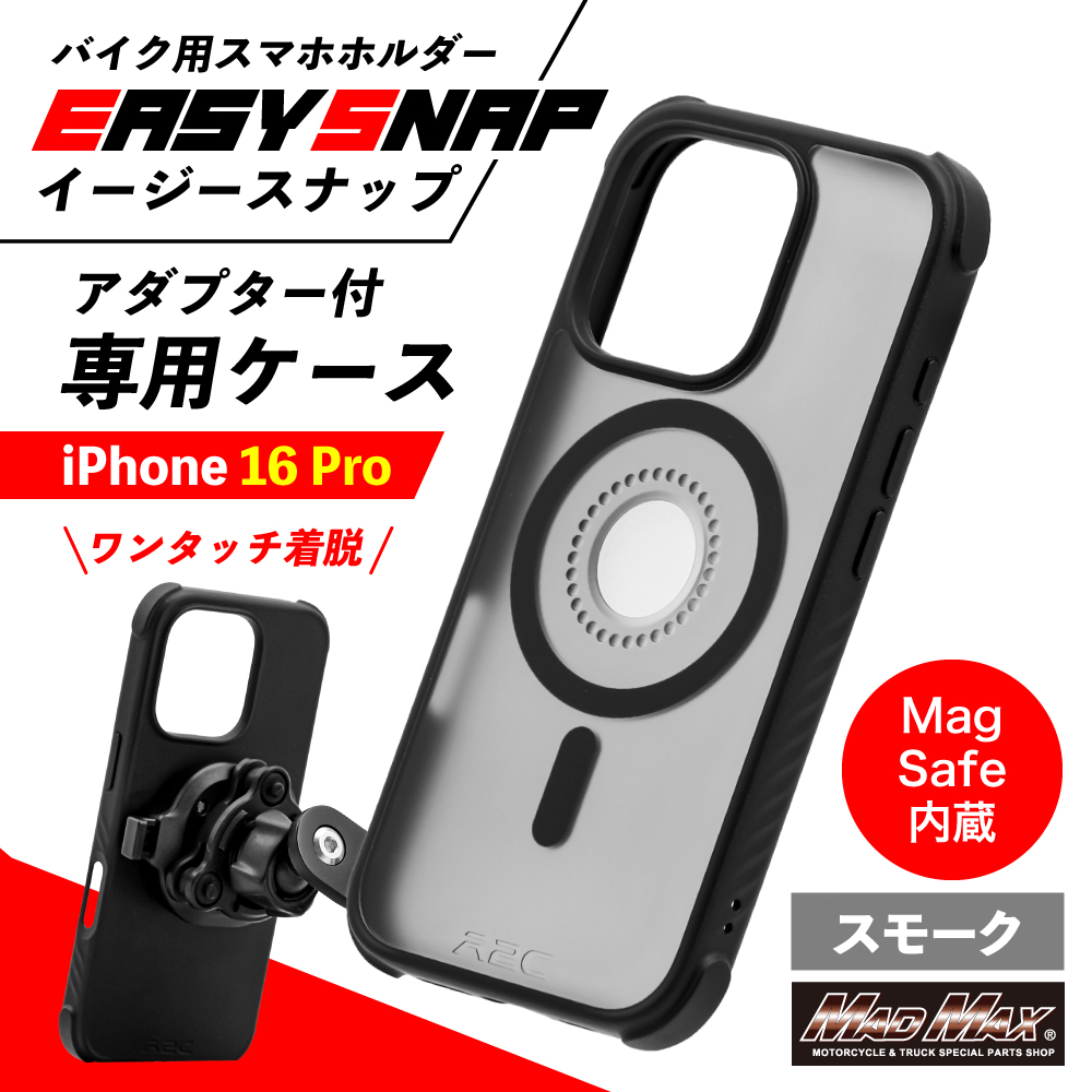 • バイク用スマホホルダー Easy Snap専用 IPHONE16Pro スマートフォンケース MagSafe対応 スモーク
