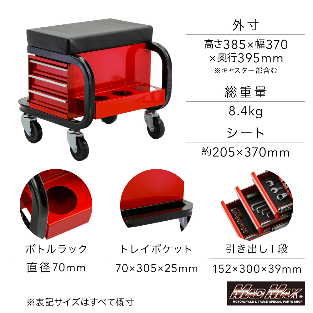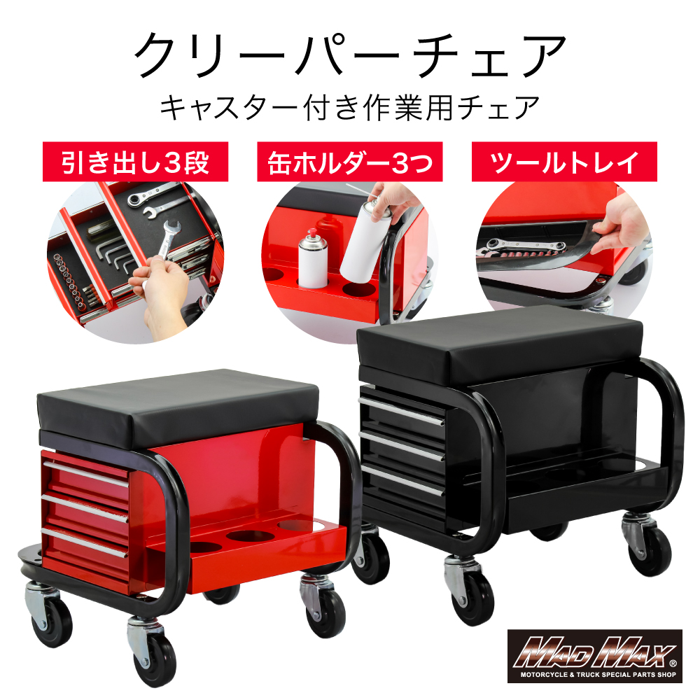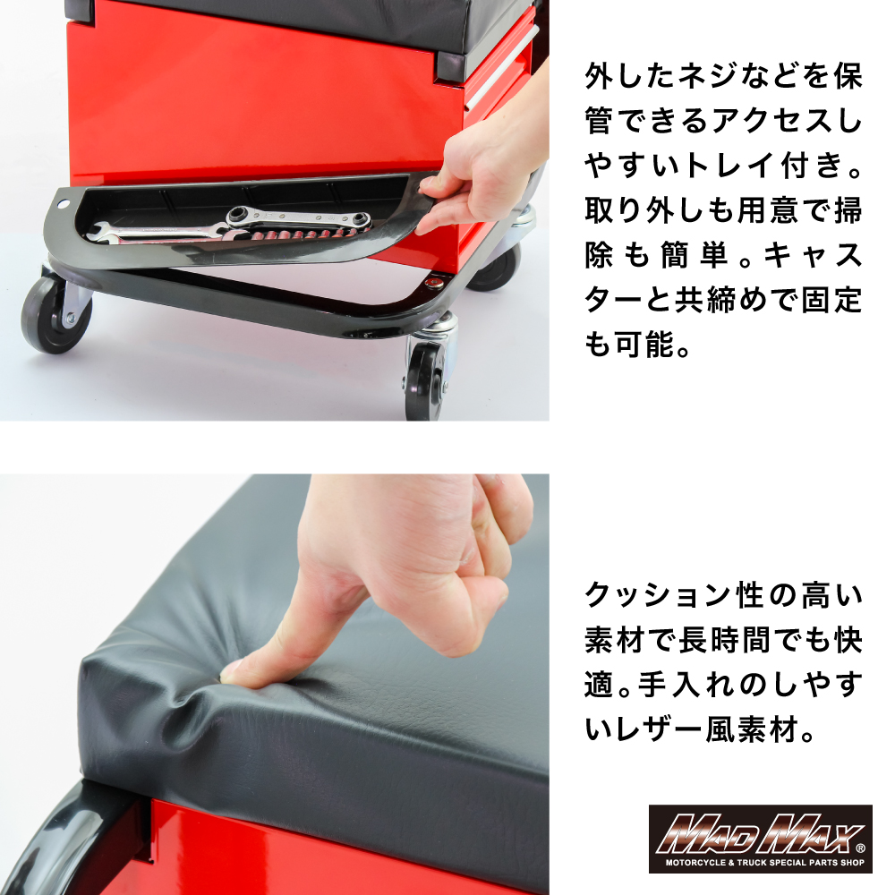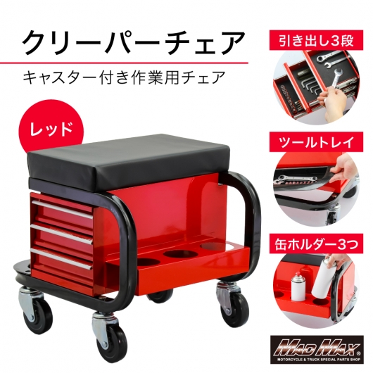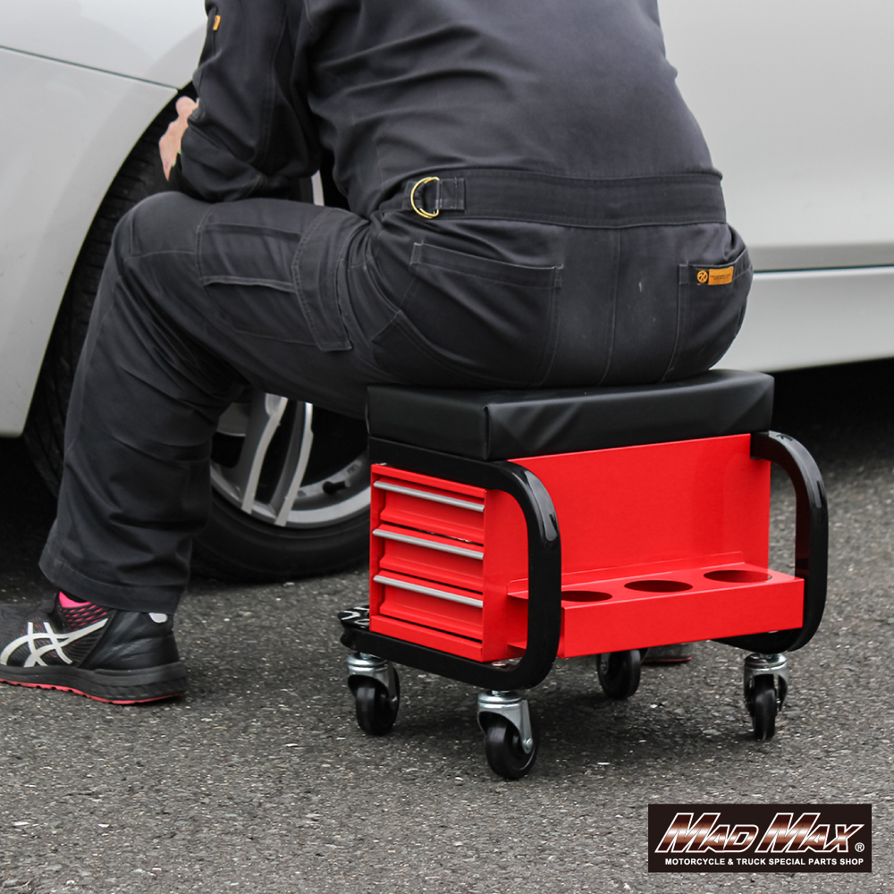 • 整備用 メカニック 工具入れ チェアクリーパー キャスター付き レッド