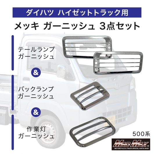 ダイハツ ハイゼットトラック 500系 用 メッキ バックランプ テールランプ 作業灯 ガーニッシュ 3点セット。