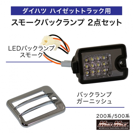 ダイハツ ハイゼットトラック S500P/S510P/S201P/S211P/S200P/S210P用 LEDバックランプ スモーク+メッキ ガーニッシュセット。