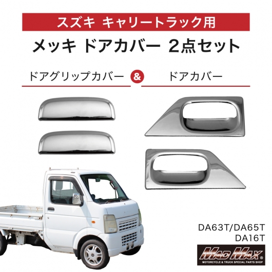スズキ キャリー DA63T/DA65T/DA16T用 メッキ ドアカバー ドアグリップカバー 左右セット。
