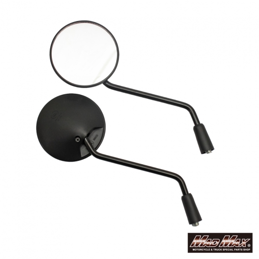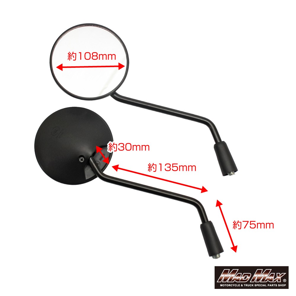 バイク用 汎用 丸形ミラー Z型ステー 逆ネジ10mm ブラック 正ネジ10mm変換アダプター付き 2本。