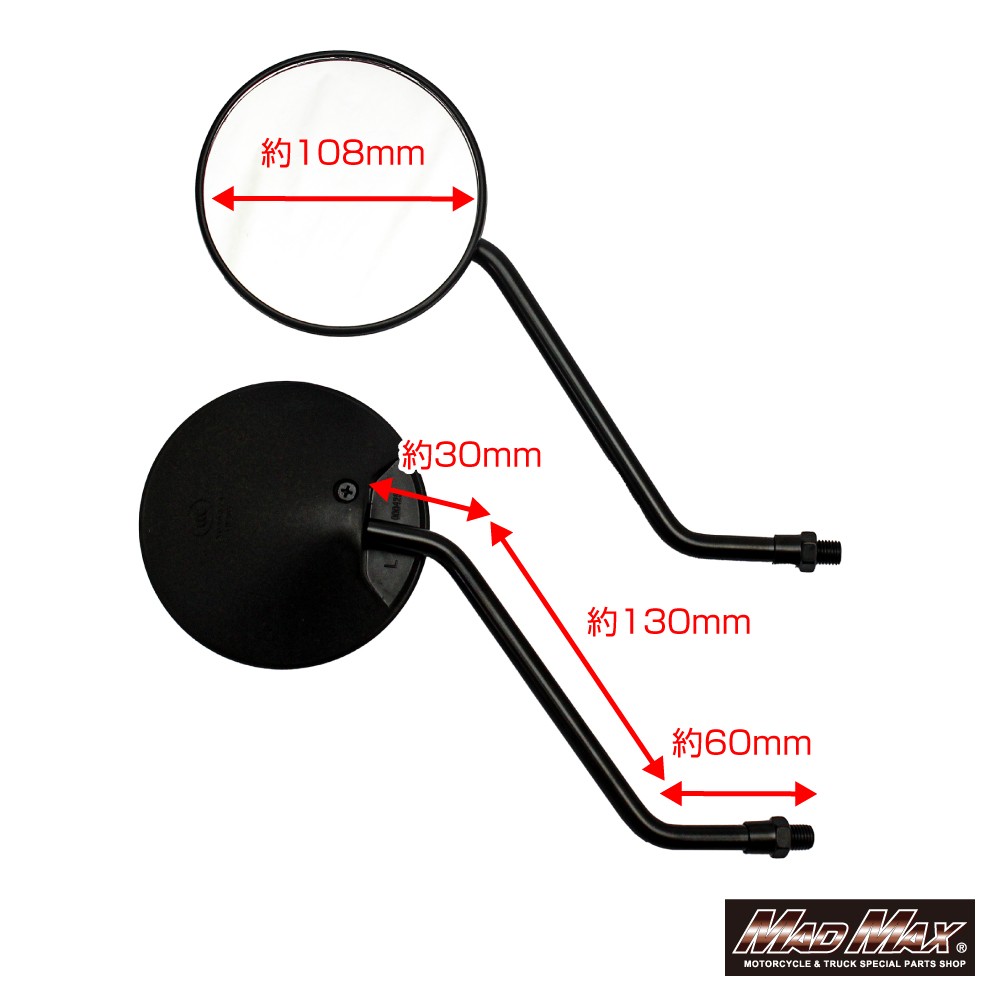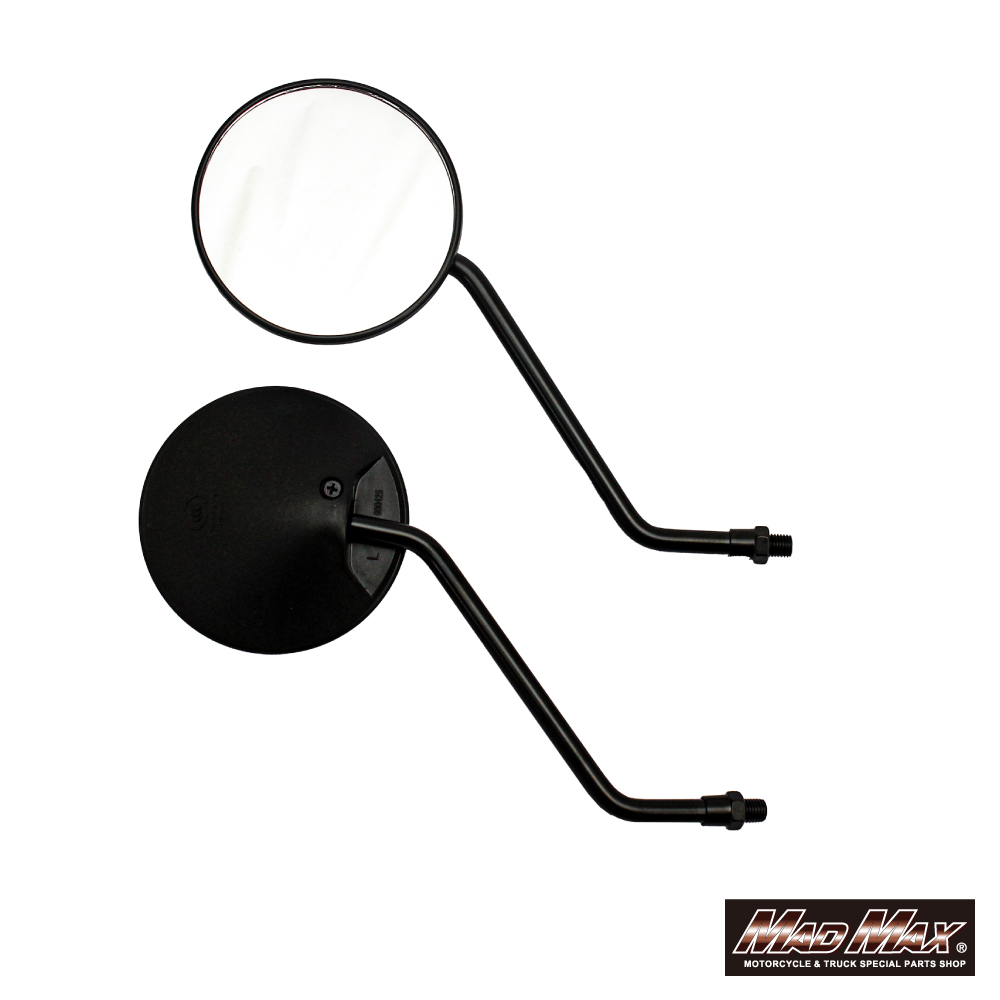 バイク用 汎用 丸形ミラー Z型ステー 正ネジ10mm ブラック 2本。