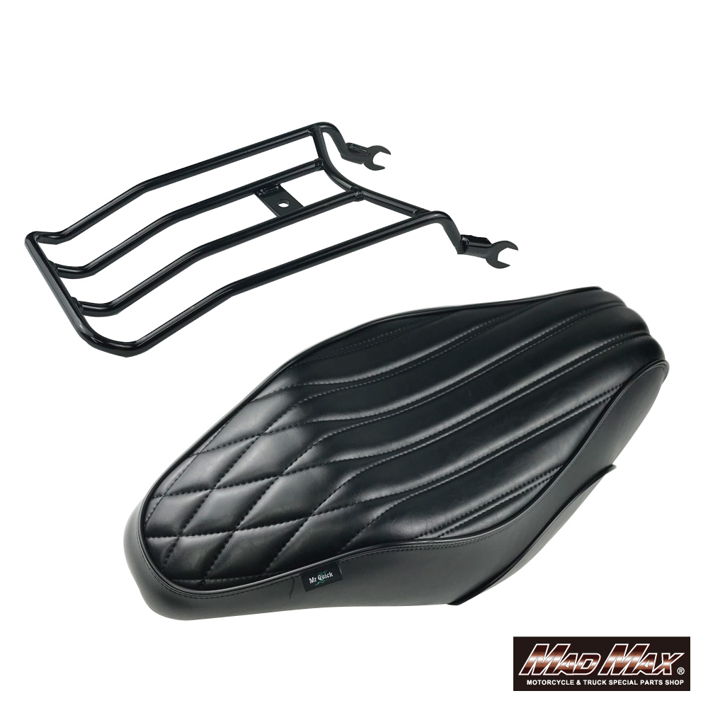 キルティング加工を施したスタイリッシュなシートとオシャレなラウンドタイプのリアキャリアセットです。