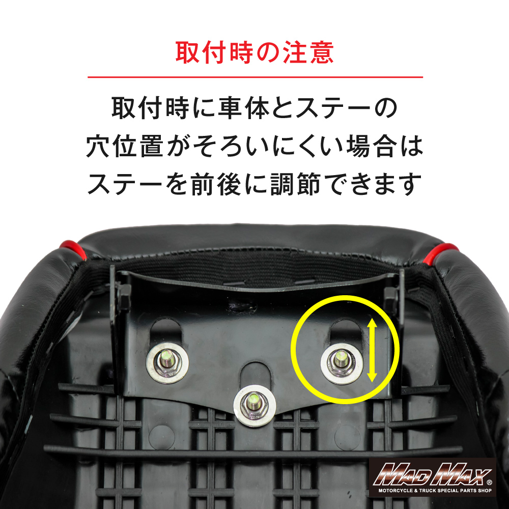 取付時に車体とステーの穴位置が揃いにくい場合は、ステーを調節してお取り付けください。