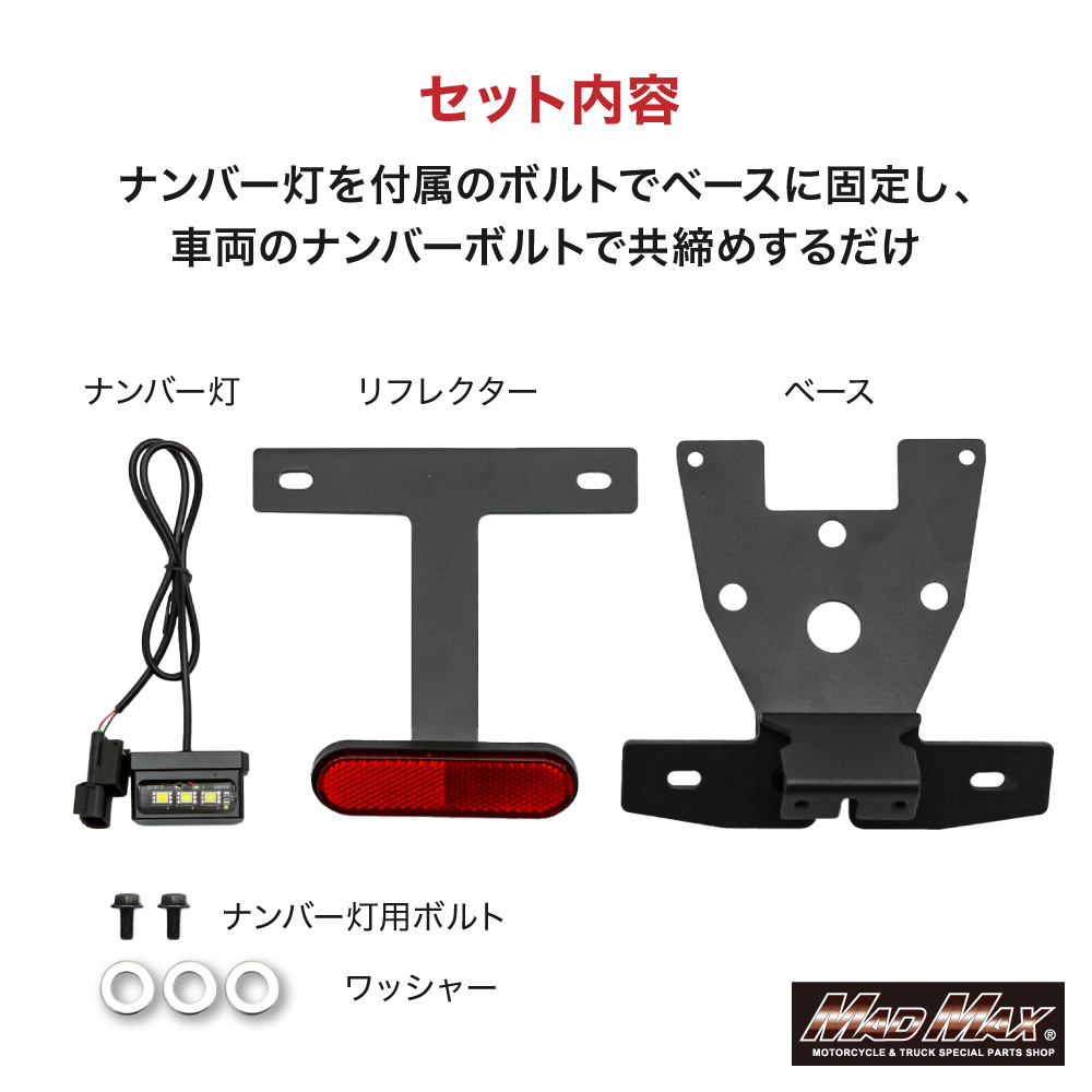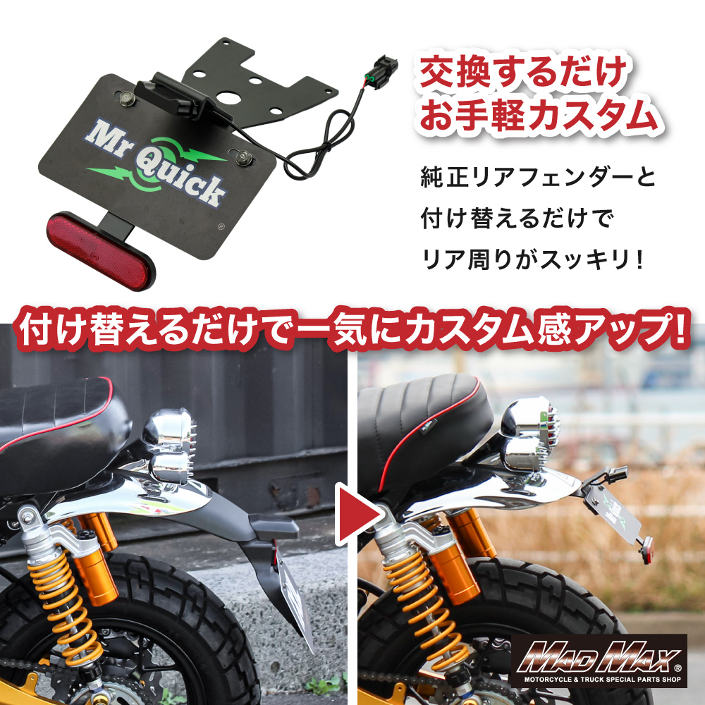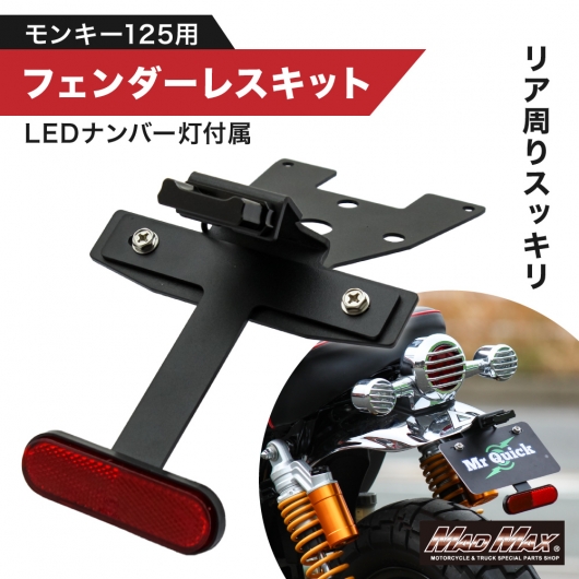 ホンダ モンキー125用 フェンダーレスキット リフレクター ナンバー灯付き ブラック。