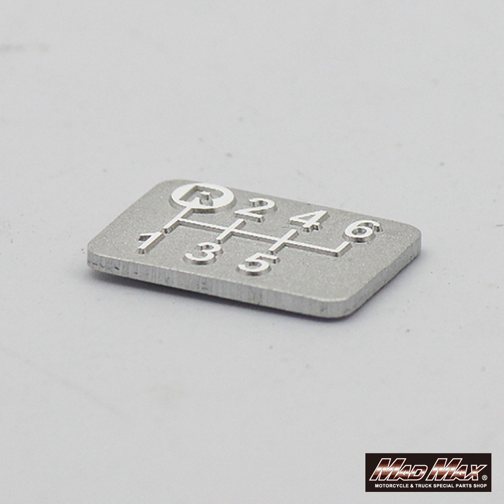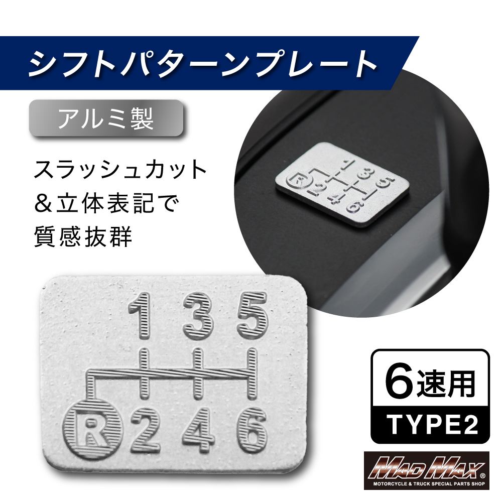 アルミ製 6速 TYPE2 シフトパターンプレート スラッシュカット シルバー。